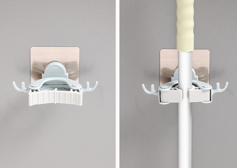 Giá Móc Treo Kẹp Cán Chổi, Cây Lau Nhà Gắn Tường, Sử Dụng Miếng Dán Siêu Chắc, TakyHome, Sản Phẩm Tiện Dụng Gia Đình. - Móc treo chổi có thể sử dụng trên nhiều bề