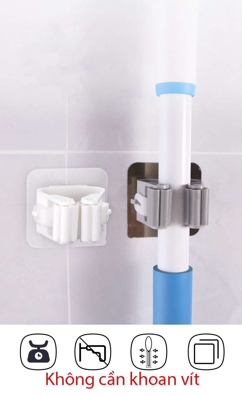 Móc dính treo chổi lau nhà tiện dụng Móc dính treo chổi lau nhà giúp bạn tận dụng tối đa diện tích của bề mặt tường nhà tắm, các mảng tường còn chống, để treo các