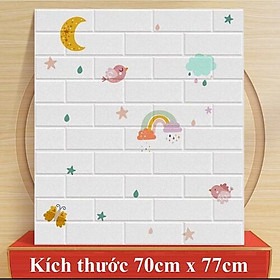 Độ dày chuẩn : 3mm Kích thước: 70*77 ( ngang 70cm, cao 77cm) Sẵn keo ở mặt sau, lột ra là dán     Công dụng tấm xốp : ️Dán che khuyết điểm tường mốc,
