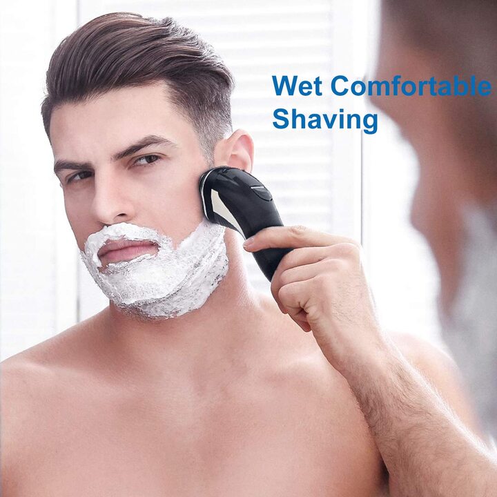 - Chọn cách cạo râu bạn thích. Với đầu bịt Khô & Ướt, bạn có thể chọn cạo khô nhanh và thoải mái. Hoặc bạn có thể cạo ướt với kem cạo râu hay bọt cạo râu, kể cả khi tắm. Reset lại máy cạo râu sau khi thay thế đầu cạo