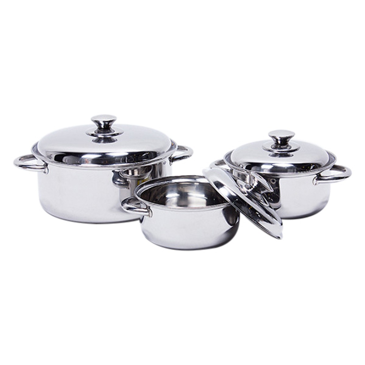 Bộ sản phẩm gồm 3 nồi với các kích thước khác nhau, đường kính nồi lần lượt là: 16cm, 18cm và 24cm. Bạn có thể hầm, nấu nhiều thực phẩm khác nhau để tạo ra những món canh nóng hổi hay món chè ngọt lịm cho cả gia đình. Bộ nồi inox có thể sử dụng trên bếp từ.