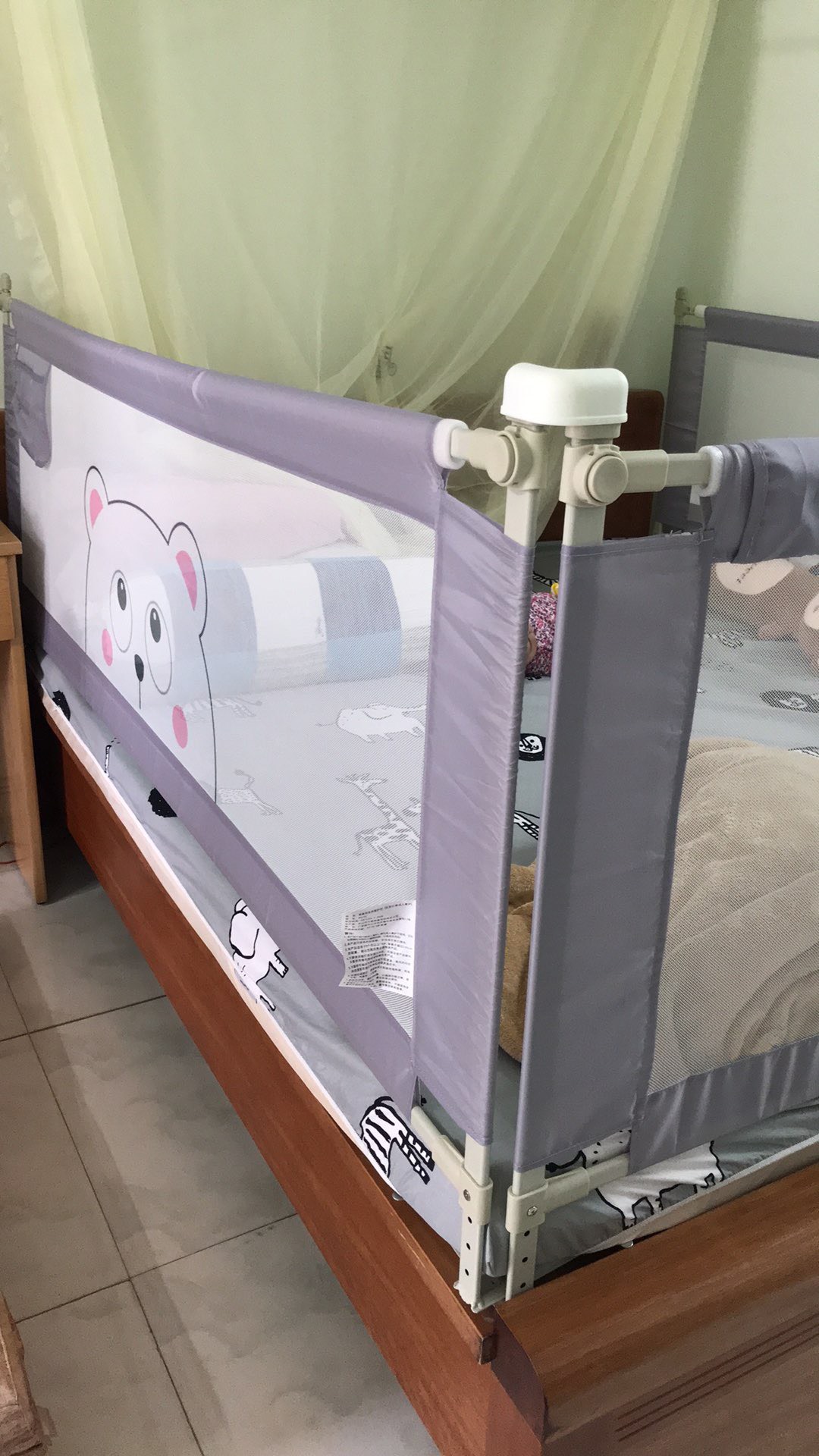 Thanh chắn giường mẫu gấu xám cực cute cho bé Dạng trượt lên xuống bằng thao tác bấm nút rất tiện sử dụng Nút bấm to bản, có khớp nối cố định giữa 2 thanh