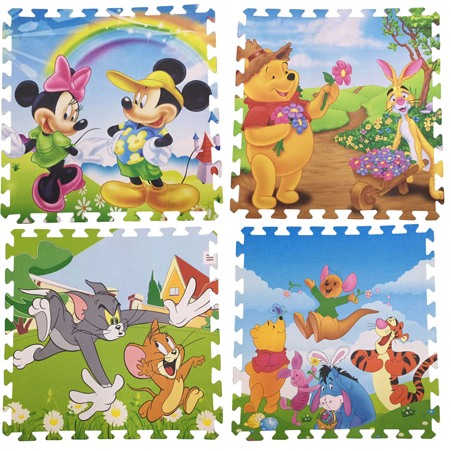 Một bộ thảm xốp gồm 4 tấm 4 hình thú khác nhau thuộc các phim hoạt hình của Công ty Walt Disney rất được trẻ em và cả người lớn yêu thích như: Tom & Jerry, Chuột Mickey, Winnie the Pooh.
