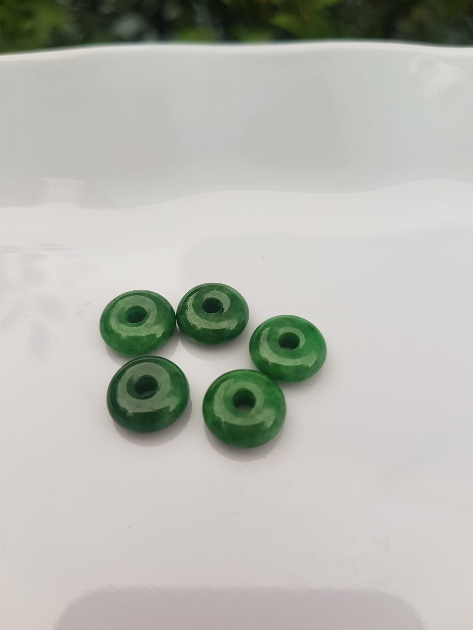 ✨Bộ 5 đồng tiền đá cẩm thạch tự nhiên xanh ngọc đậm đều đẹp Nữ Phối vòng tay,mặt dây chuyền vàng đeo cực kỳ xinh xắn ạ Size hạt 9mm x dầy 3,8mm x lỗ ở giữa đk 2mm mệnh Thủy Mộc Hỏa ạ