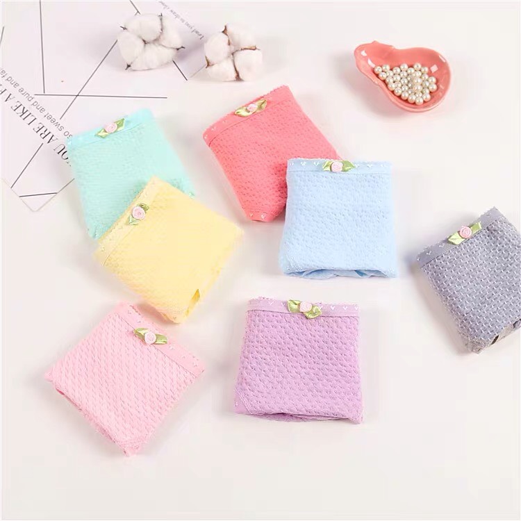 Quần Lót Nữ Cotton Kháng Khuẩn Kiểu Vải Nhăn Cạp Gắn Nơ, Quần Chip Thấm Hút Mồ Hôi