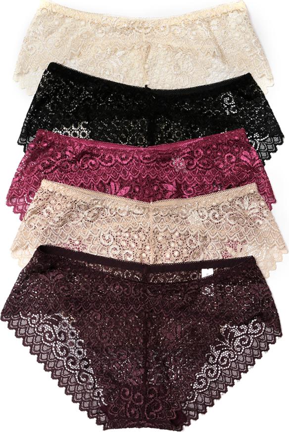 Combo 5 quần lót ren nữ với chất liệu nhẹ, thoáng mát cùng kiểu dáng ôm gọn vòng ba, thiết kế không tạo vết hằn giúp bạn gái tự tin, quyến rũ khi diện trang