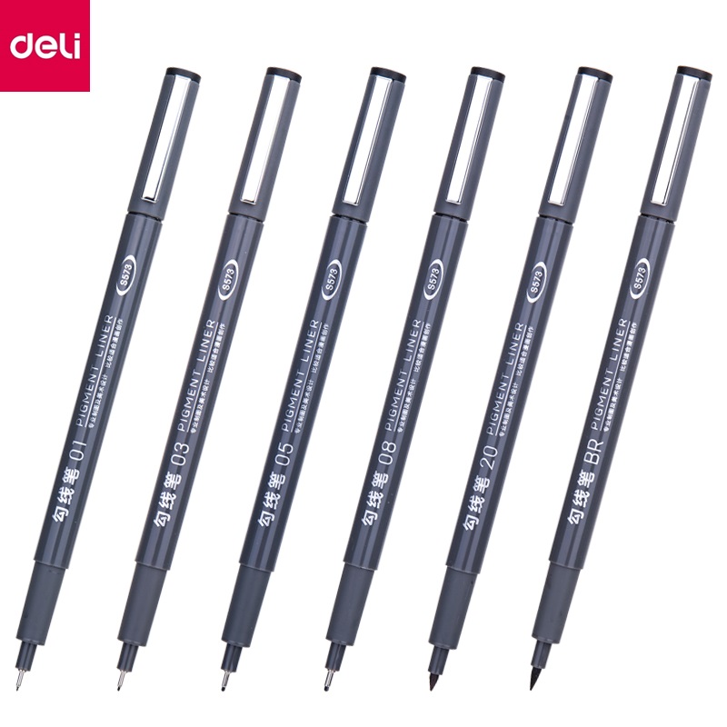 ✨Bộ 6 cây Bút đi nét - Bút vẽ kỹ thuật mực đe - vẽ caligraphy phác thảo mực đen kháng nước Deli S573