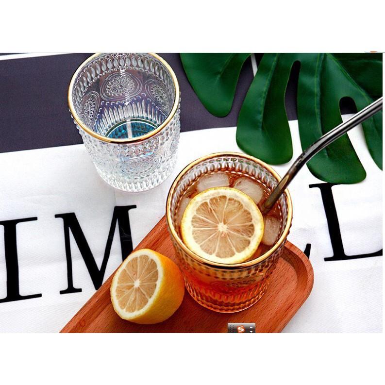 ✨Bộ 6 cốc thủy tinh trắng viền vàng uống nước, trà cà phê hoa văn tròn cao cấp
