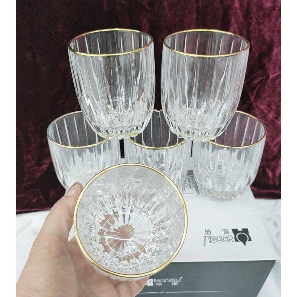 Chất liệu: thủy tinh Bộ sản phẩm gồm: 6 cốc thủy viền vàng Thiết kế đẹp mắt, phù hợp tiện dụng Độ bền cao, chịu nhiệt tốt, hạn chế nứt vỡ do tác động của