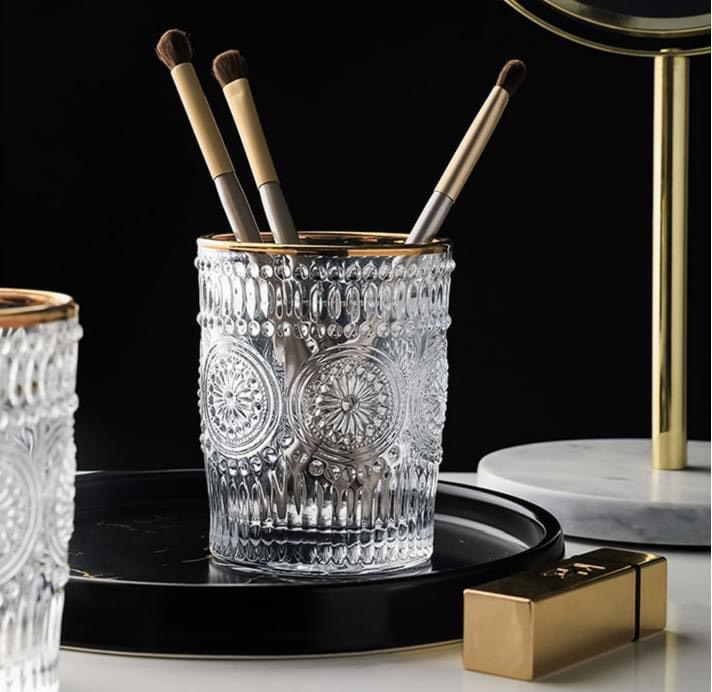 ✨BỘ 6 CỐC THỦY TINH UỐNG NƯỚC VIỀN VÀNG HOA VĂN TRÒN NỔI - ANTH481