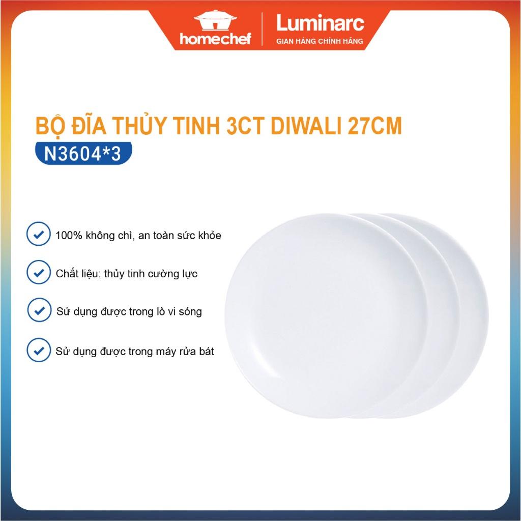 ✨Bộ 6 đĩa (dĩa) thủy tinh Luminarc Everyday 27cm N3604*6, dùng lò vi sóng, máy rửa bát