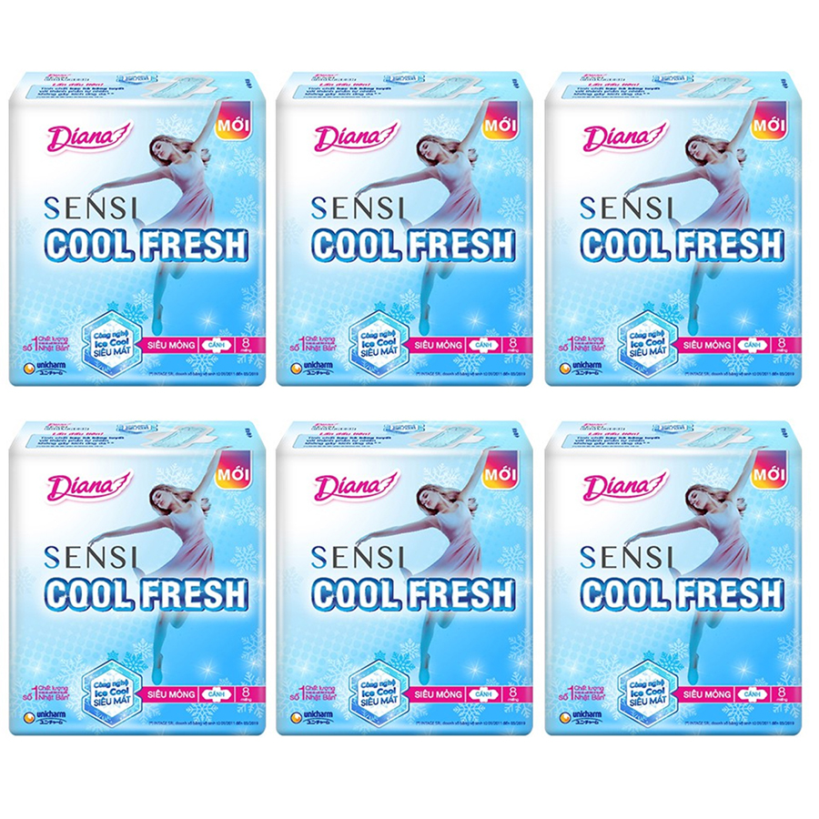 Lốc 6 Gói Băng vệ sinh Diana Sensi Cool Fresh Siêu mỏng cánh 8 miếng - Date luôn mới