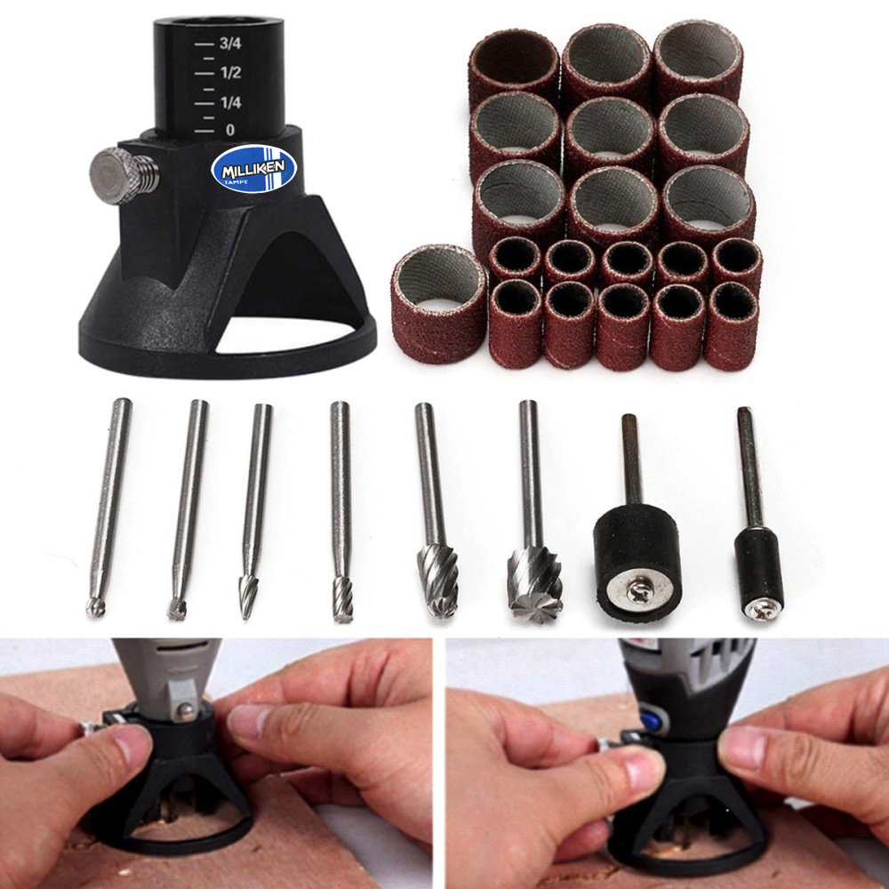 ✨Bộ 6 Mũi Mài Khắc , Cố Định Máy Khoan, 20 Băng Chà Nhám Kèm Trục Milliken NL-3086