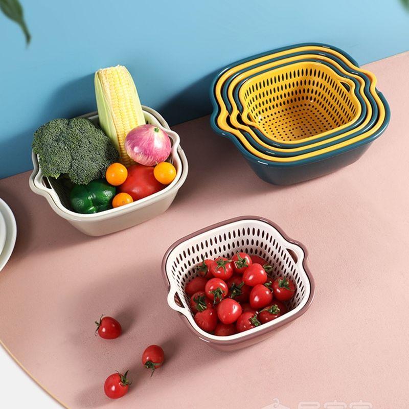 » Kết hợp 2 loại rổ thành một đôi, một chiếc có công dụng để ráo, 1 chiếc để đựng nước, mang lại hiệu quả mỗi khi ngâm, rửa
