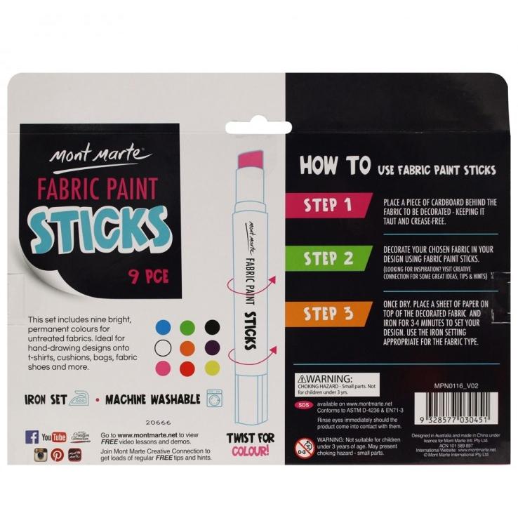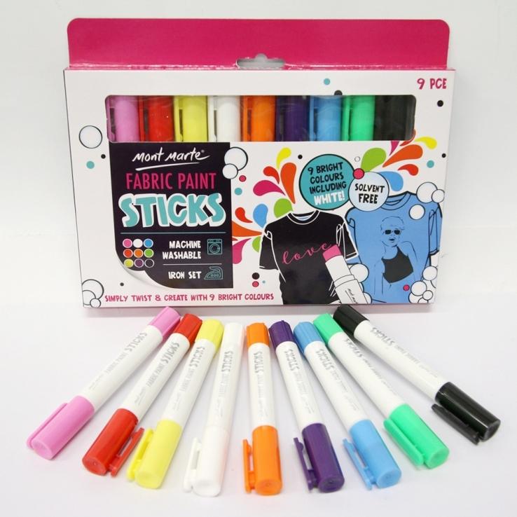 Bộ bút vẽ vải dạng thỏi Mont Marte Fabric Paint Sticks 9 màu