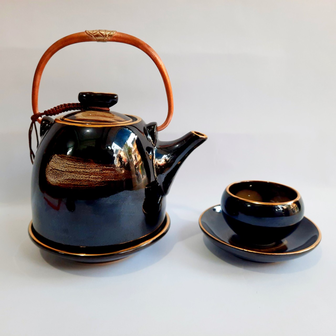 Ấm chén Bát Tràng cao cấp men xanh viền chỉ vàng kim Dung tích 450 ml Giá 550k