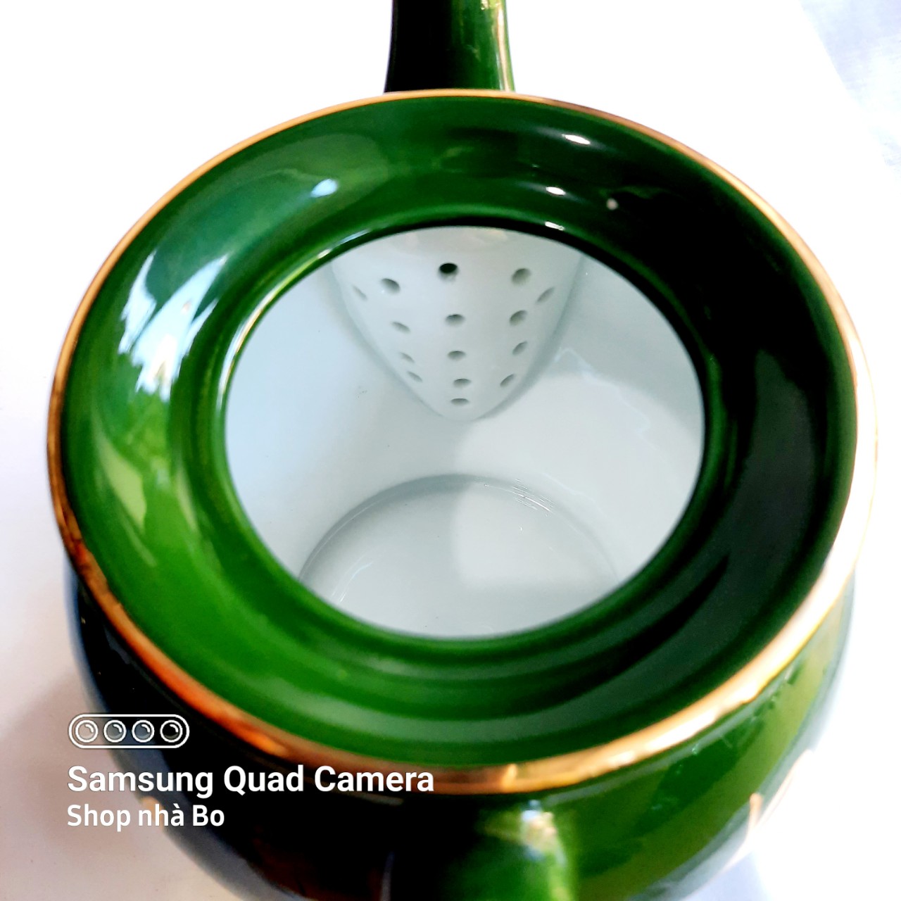 - Là sản phẩm hội tụ được nét tinh xảo của bàn tay Nghệ nhân Bát Tràng. Bên ngoài được tráng một lớp men xanh ngọc độc đáo kết hợp với các họa tiết viền vàng kim 24k đảm bảo sự sang trọng quý phái