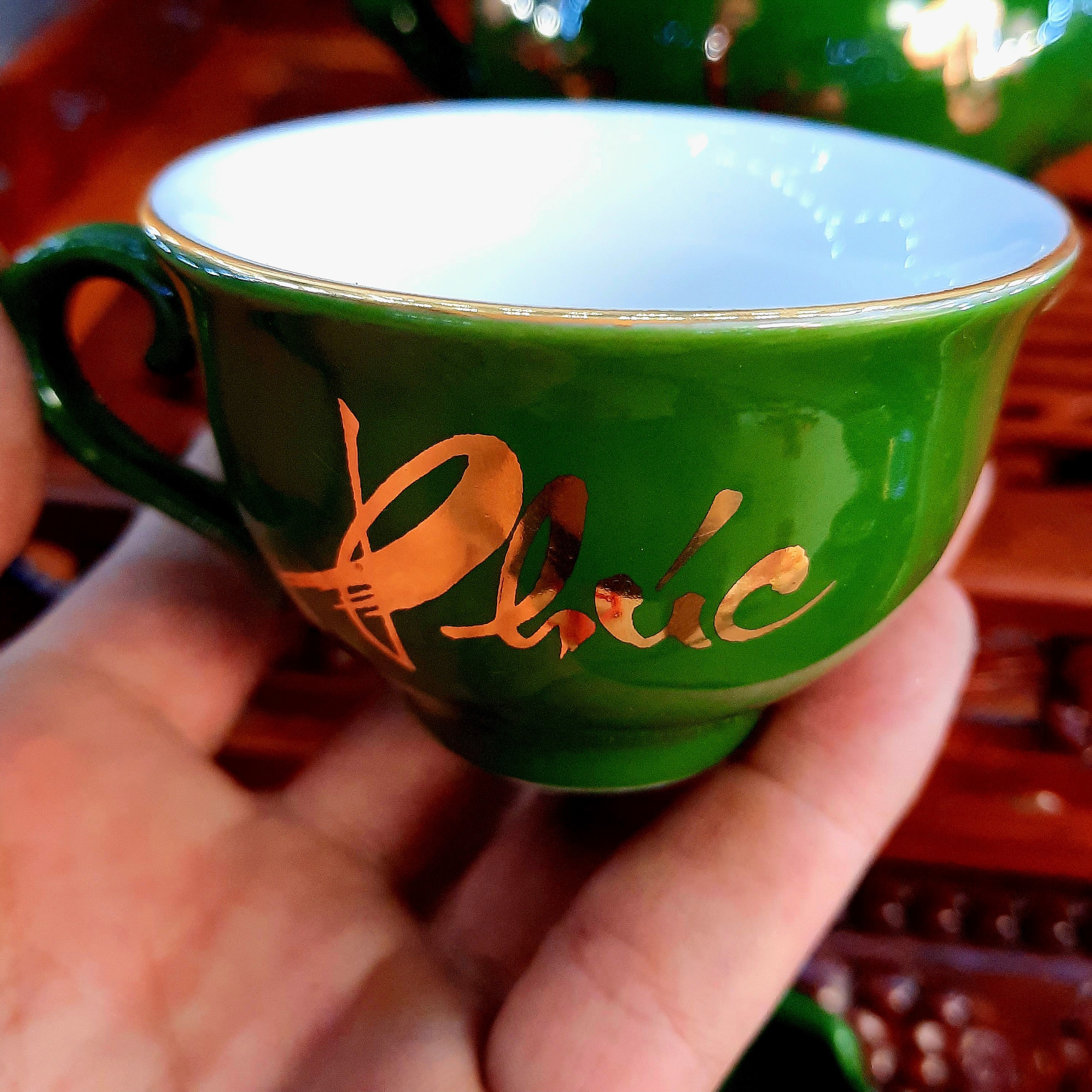 ✨Bộ ấm chén Bát Tràng phú quý men xanh lục ngọc bảo họa tiết Phúc - Lộc - Thọ vẽ vàng 24k