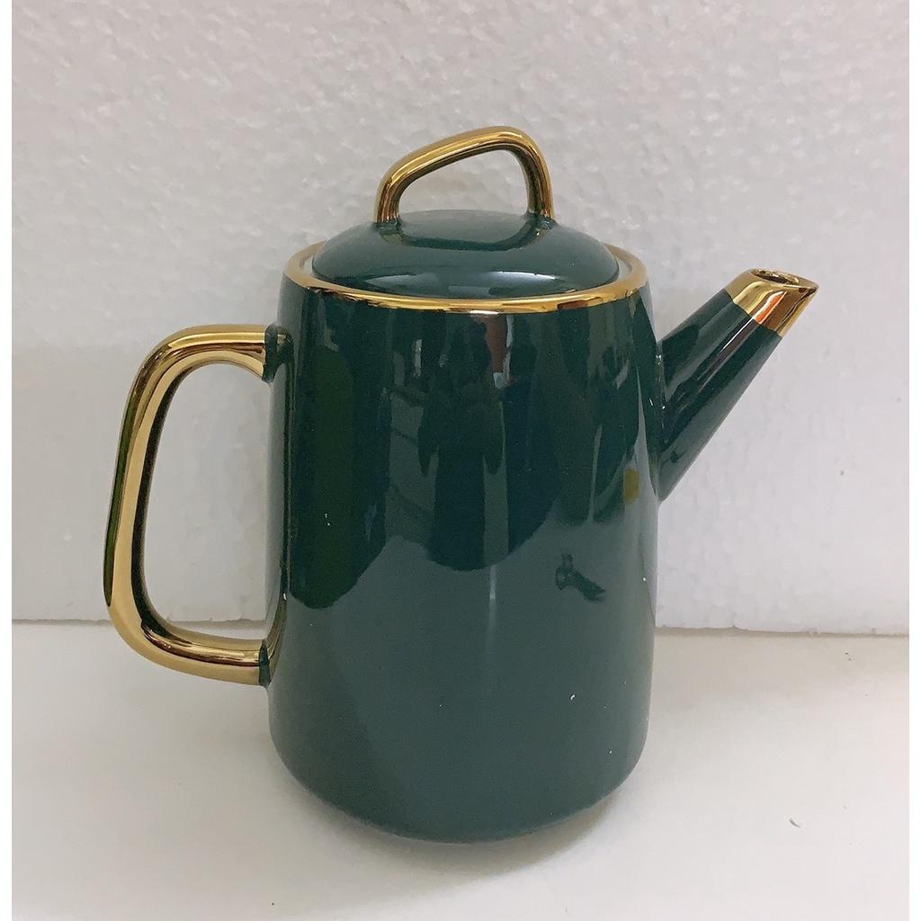 Ấm chén Bát Tràng cao cấp men xanh viền chỉ vàng kim Dung tích 450 ml Giá 550k