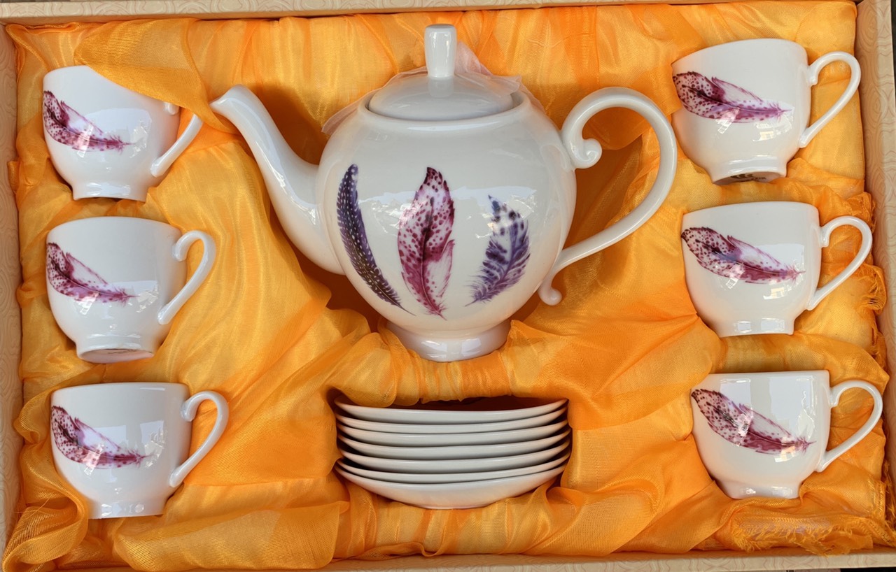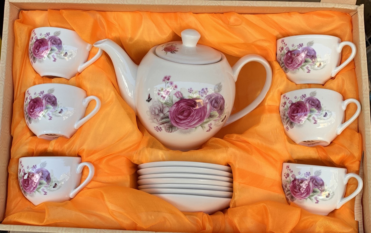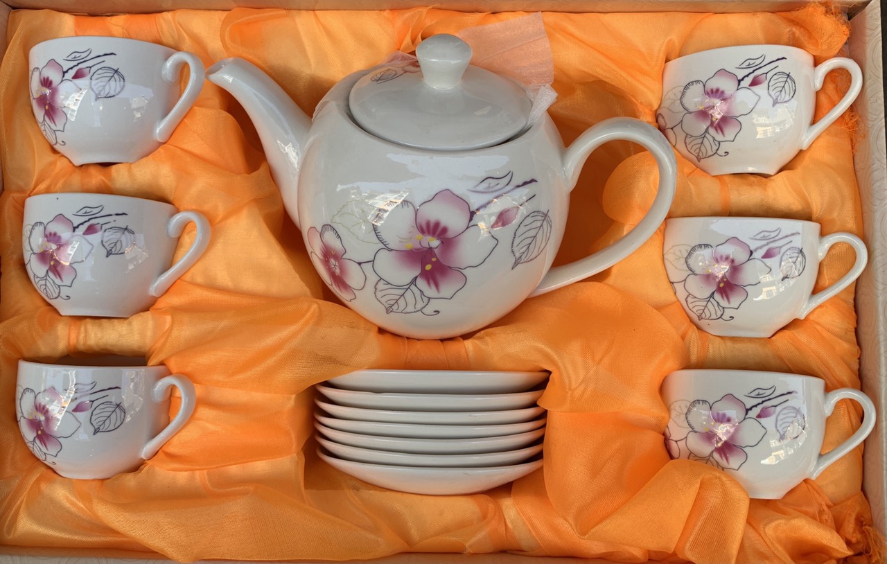 Mua tại TiktokMột bố ấm trà đầy đủ bao gồm: 1 ấm pha trà 6 tách uống trà 6 đĩa lót tách. 1 đĩa lót ấm Cốc cao 5 phân, đường kính 6,7cm dung tích 100ml Ấm cao 14cm cả nắp, đường kính tròn của ấm là 12,5cm cả quai và vòi 21cm
