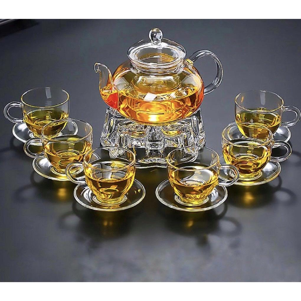 BỘ ẤM TRÀ THUỶ TINH CHỊU NHIỆT CÓ ĐẾ NẾN, BỘ ẤM CHÉN UỐNG TRÀ CAO CẤP 600ML