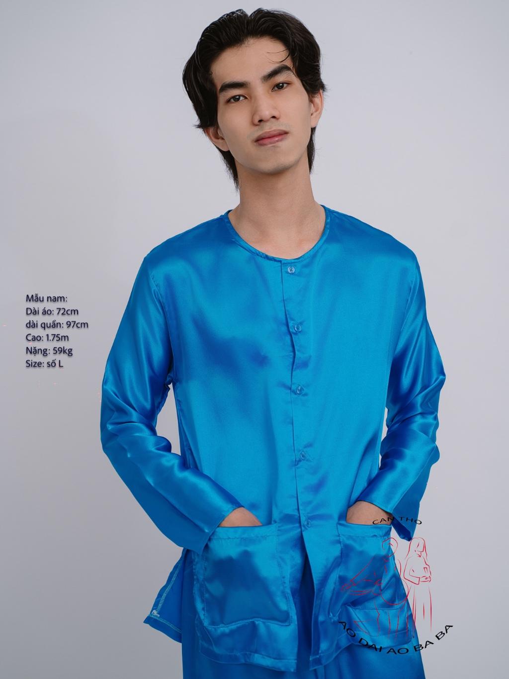 ✨Bộ áo bà ba Nam Phi bóng xanh dương- Có bộ bà ba Bigsize- may sỉ bà ba toàn quốc - May bộ bà ba theo yêu cầu