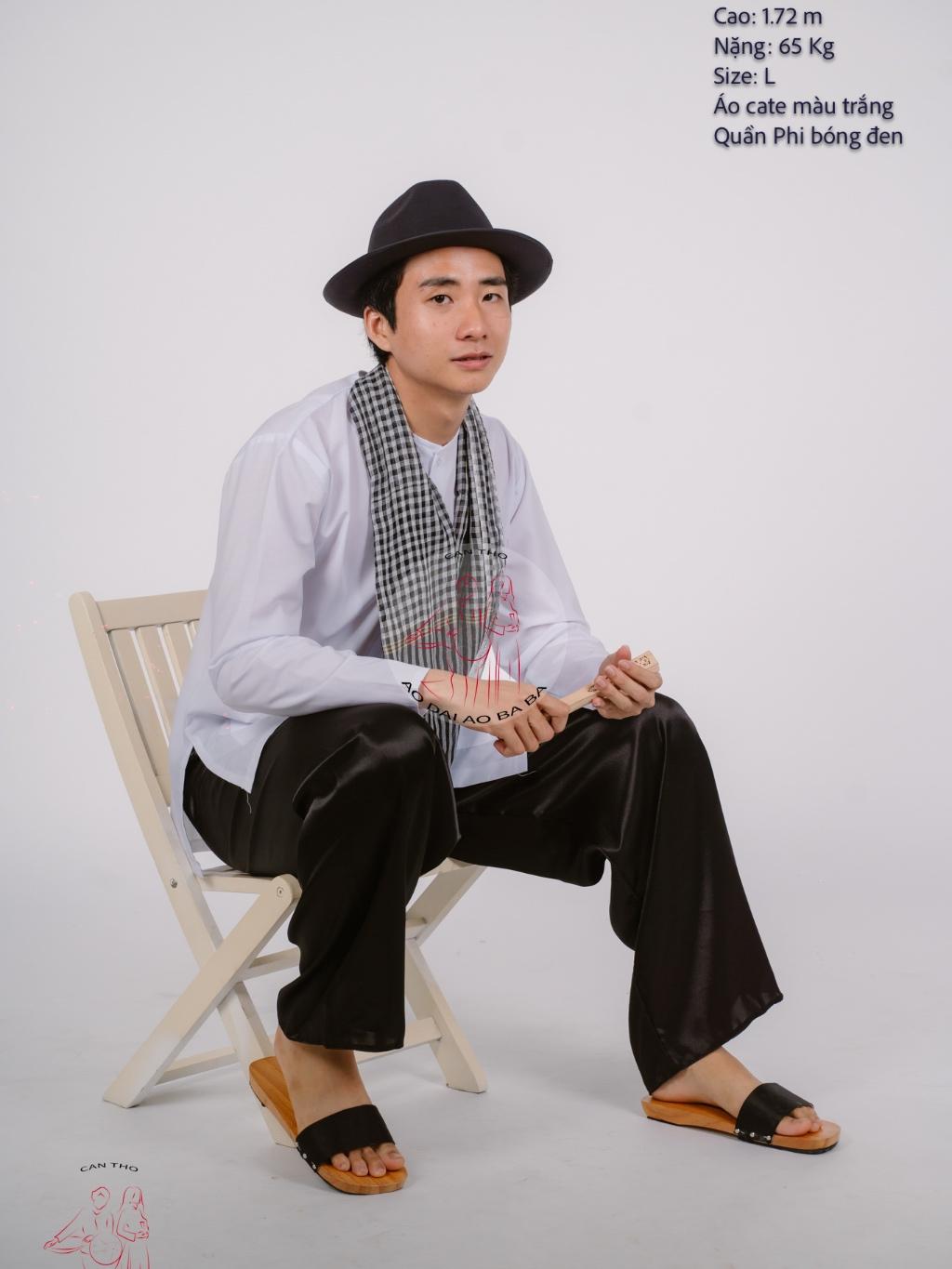 ✨Bộ áo bà ba nam phối áo cate trắng + Quần cate đen - Có bộ bà ba Bigsize