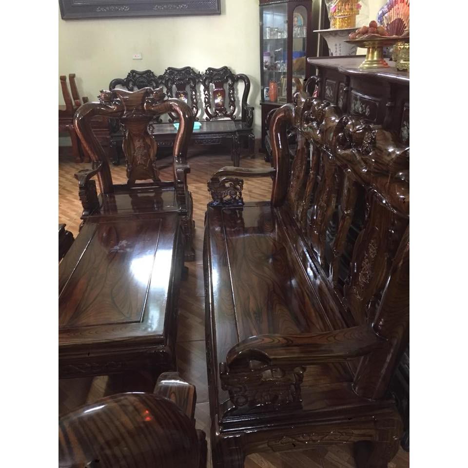 Compo 12Tr Bộ Ghế Minh Đào Gỗ Xoan Ta Và Kệ Tivi 2m2 Gỗ Xoan Đào Vẽ Vân Phun PU Giả Mun Giá Gốc