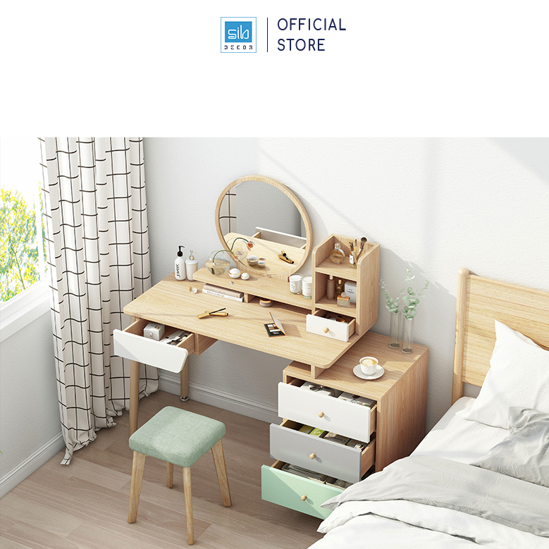 - Bàn trang điểm với thiết kế độc đáo và hiện đại mang phong cách Bắc Âu đa màu sắc.