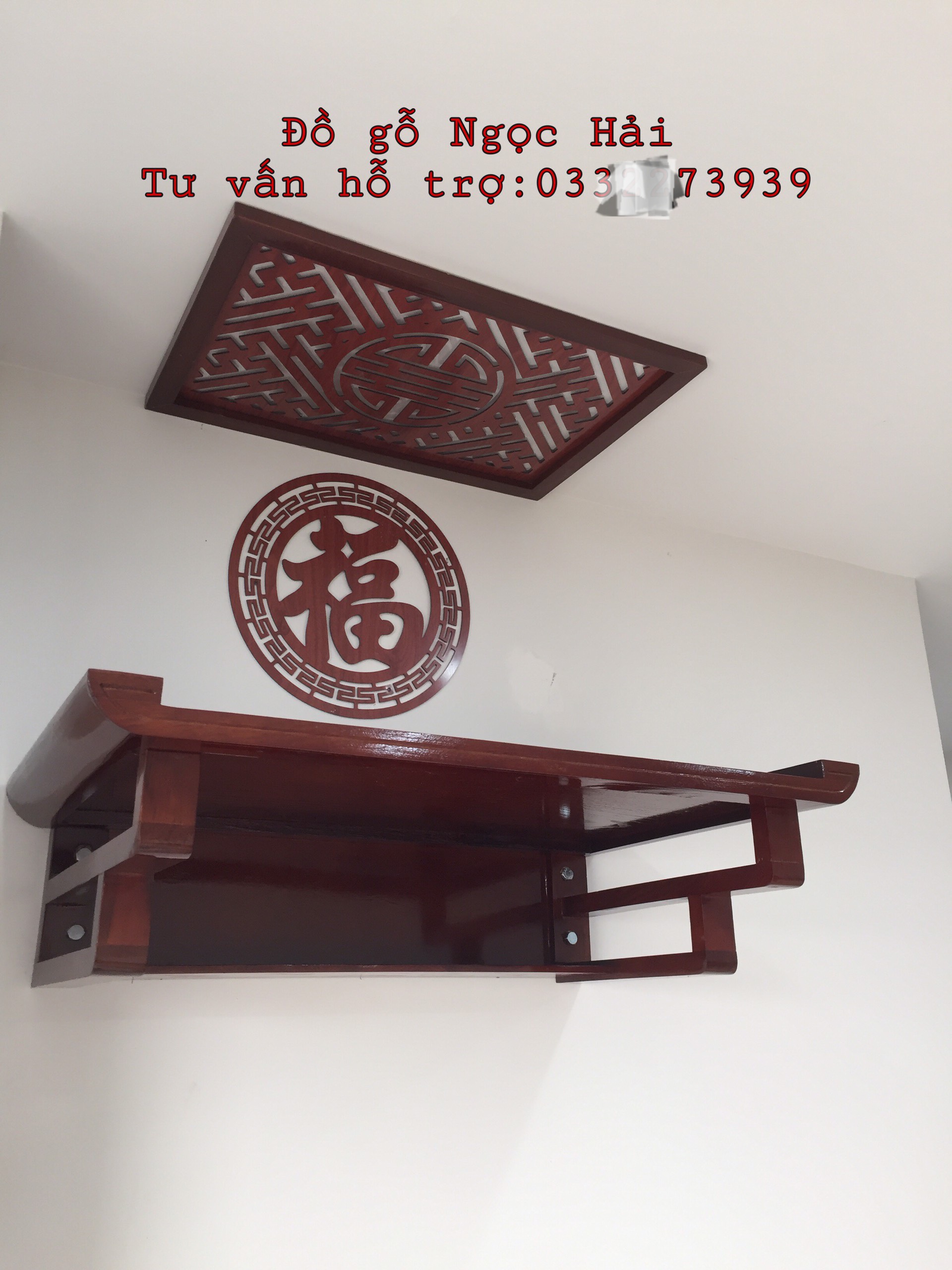 ✨Bộ bàn thờ chung cư bằng gỗ sồi + ám khói + chữ phúc hay hoa văn bất kỳ