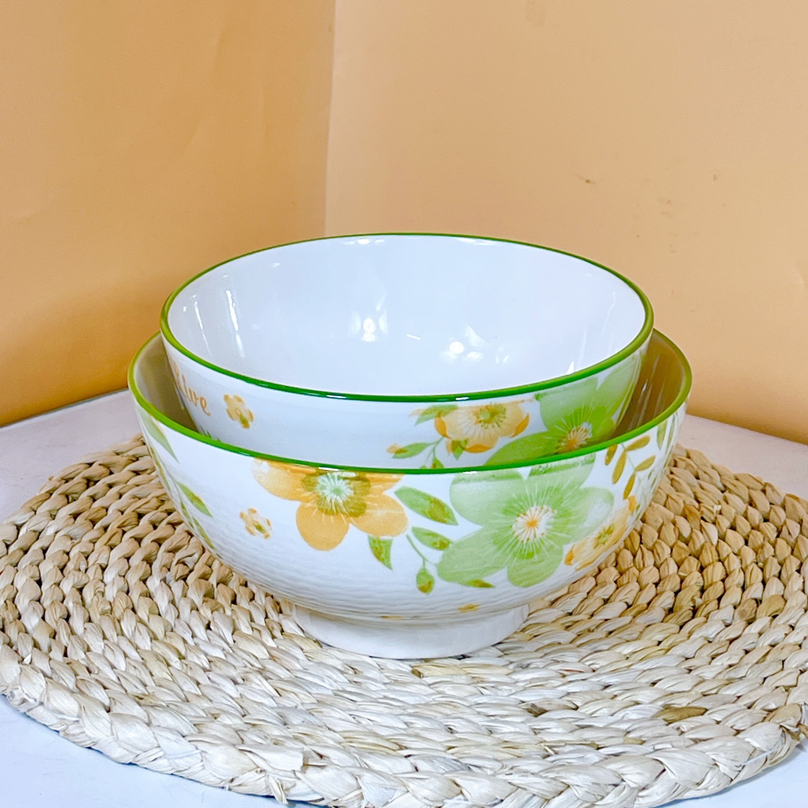 Thiết kế đơn giản với tông màu xanh bạc hà viền trắng đem đến sự tinh tế và trang nhã cho không gian bàn ăn. Sản phẩm phù hợp với nhiều không gian sống như