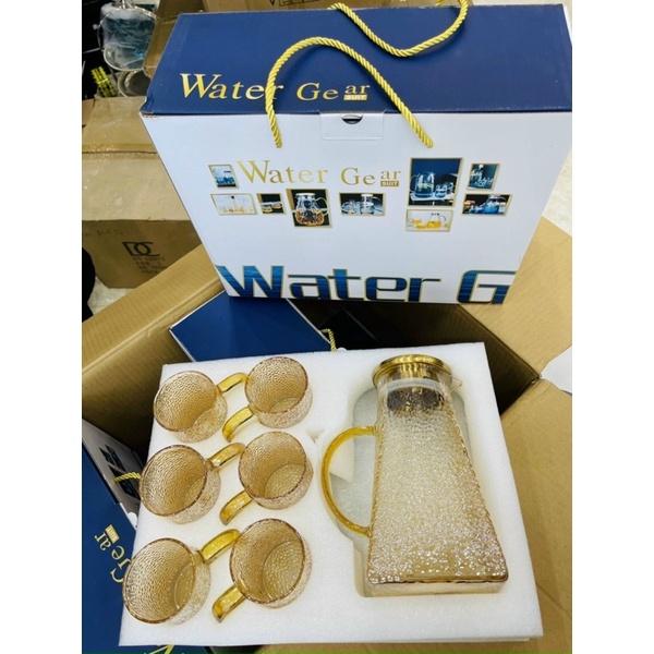 Bộ bình 6 cốc thủy tinh chịu nhiệt mạ vàng cao cấp