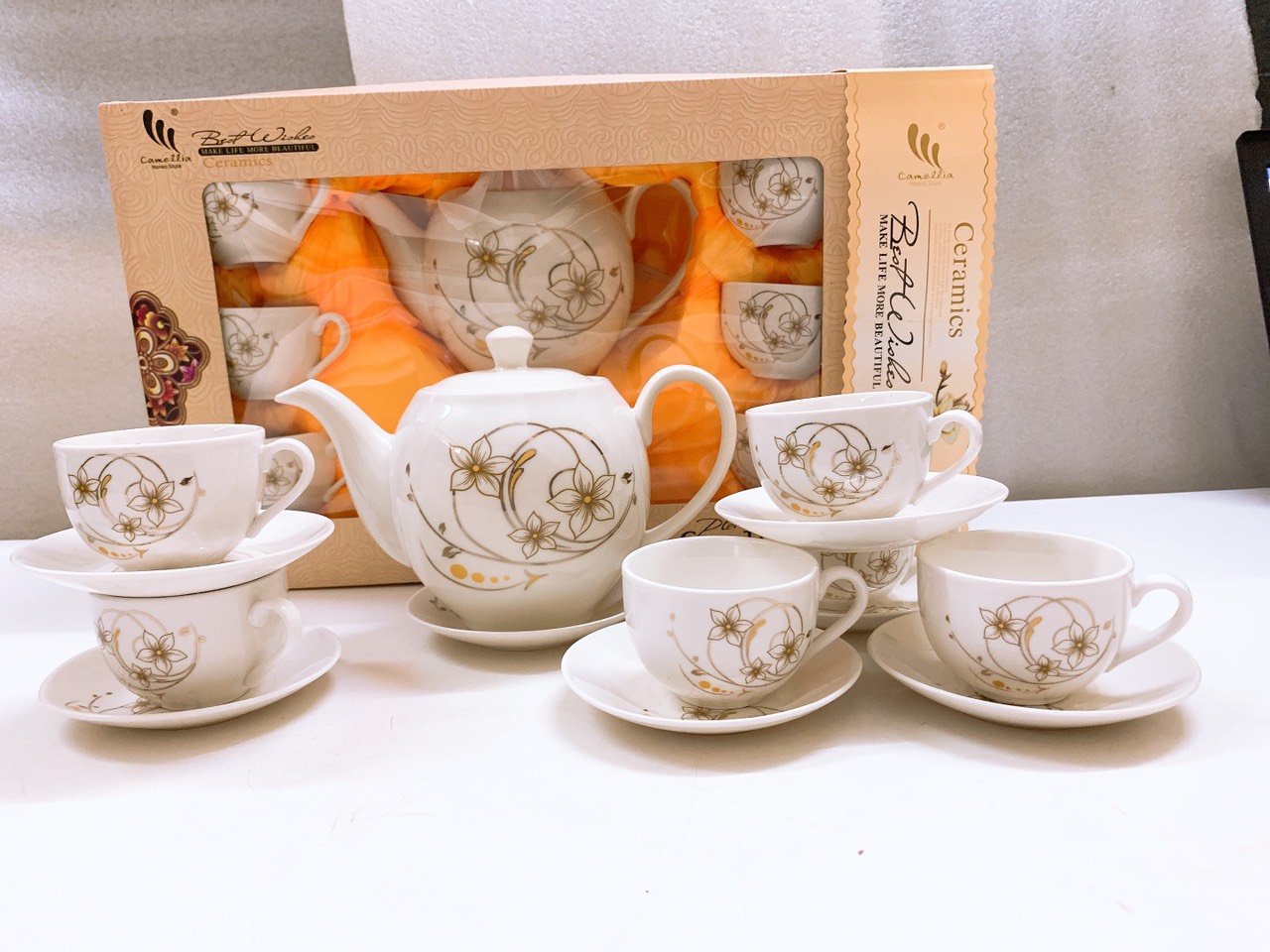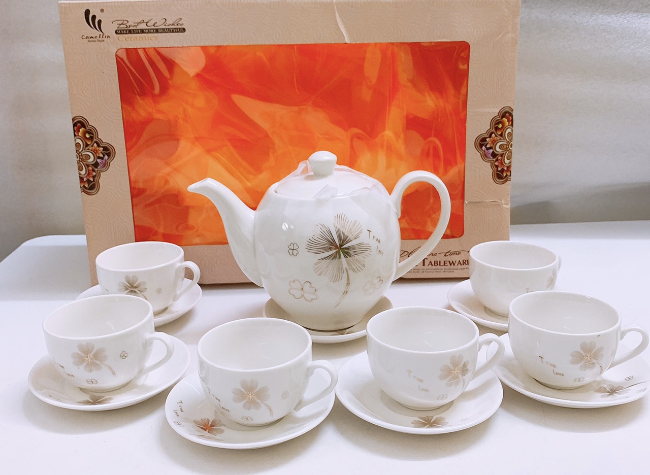 Một bộ sản phẩm bao gồm: 01 ấm, 01 đĩa ấm, 06 chén và 06 đĩa chén. Bộ sản phẩm được làm từ chất liệu gốm cao cấp, bảo đảm an toàn vệ sinh