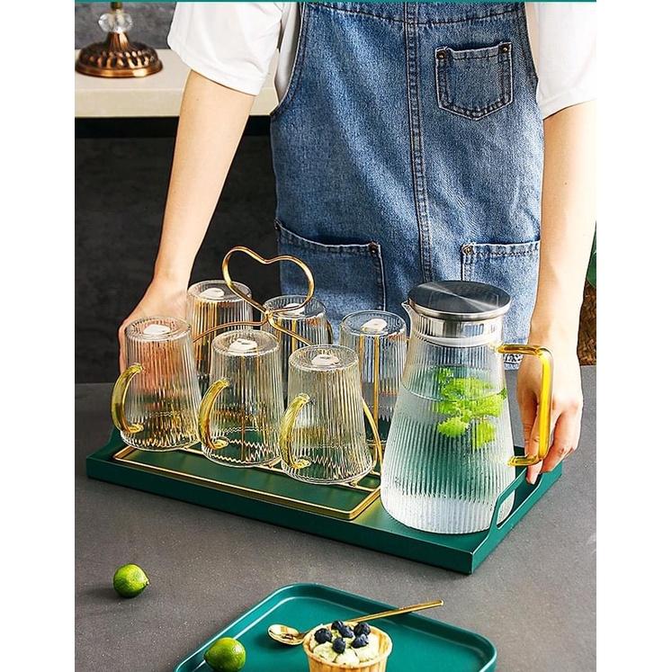 ✨Bộ bình thủy tinh kèm 6 cốc vân tăm chịu nhiệt cao cấp quai vàng ( không kèm khay và giá úp cốc )