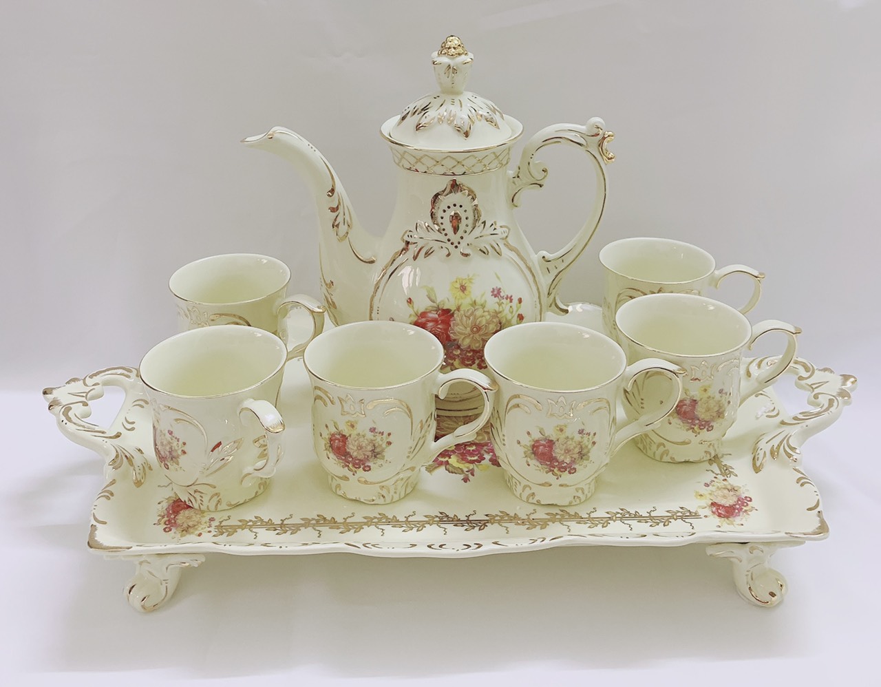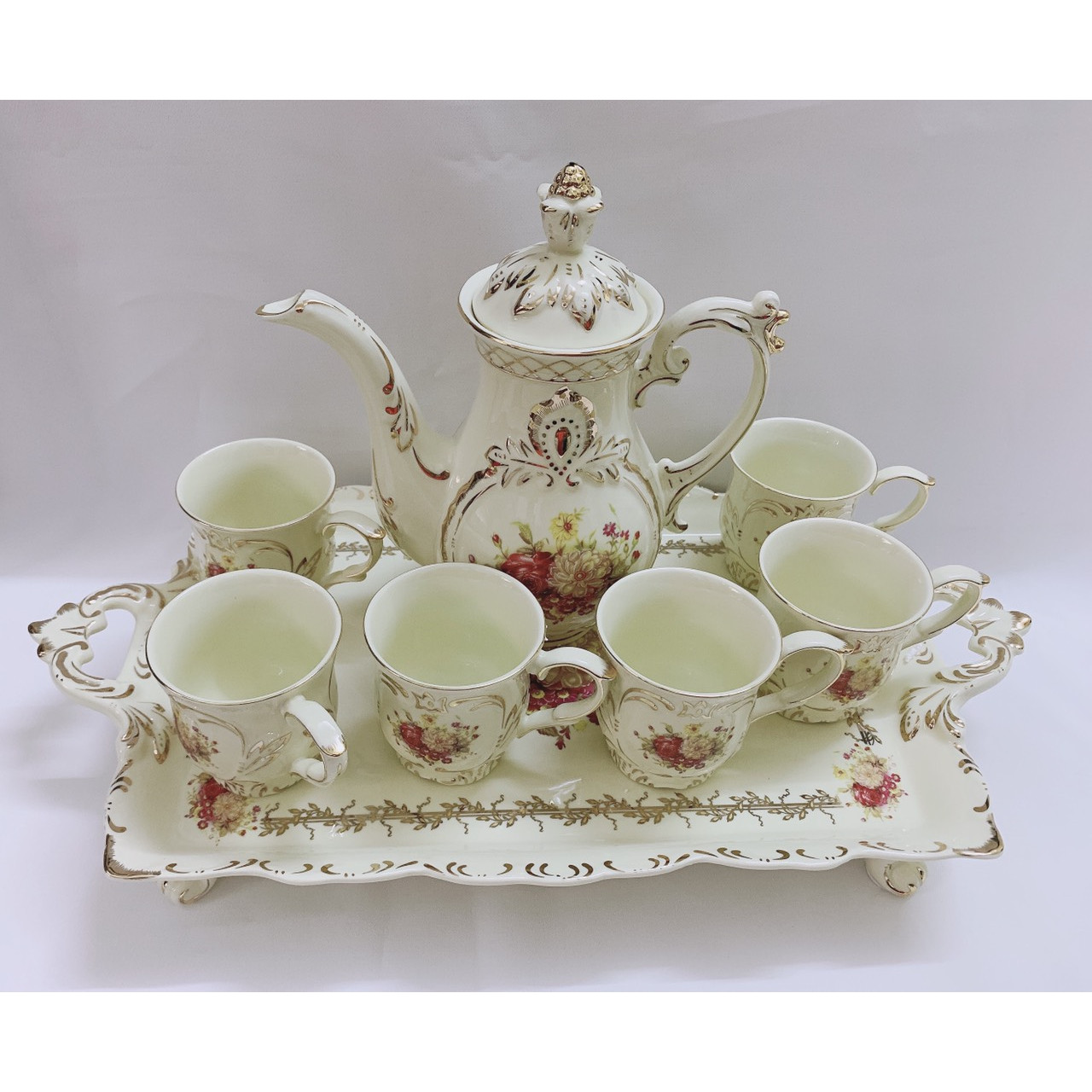 Trọn Bộ Ấm Chén Trà Phong Cách Cổ Điển Châu Âu - Họa Tiết Hoa Hồng Đầy Tinh Tế