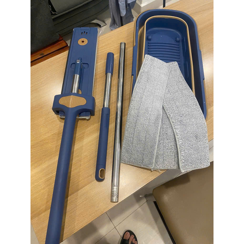 MÔ TẢ SẢN PHẨM: Cây lau nhà tự vắt thông minh (1 thùng + 2 cây lau + 8 bông lau) đầu xoay 360 độ tiện lợi Thông tin sản phẩm Cán bằng inox không