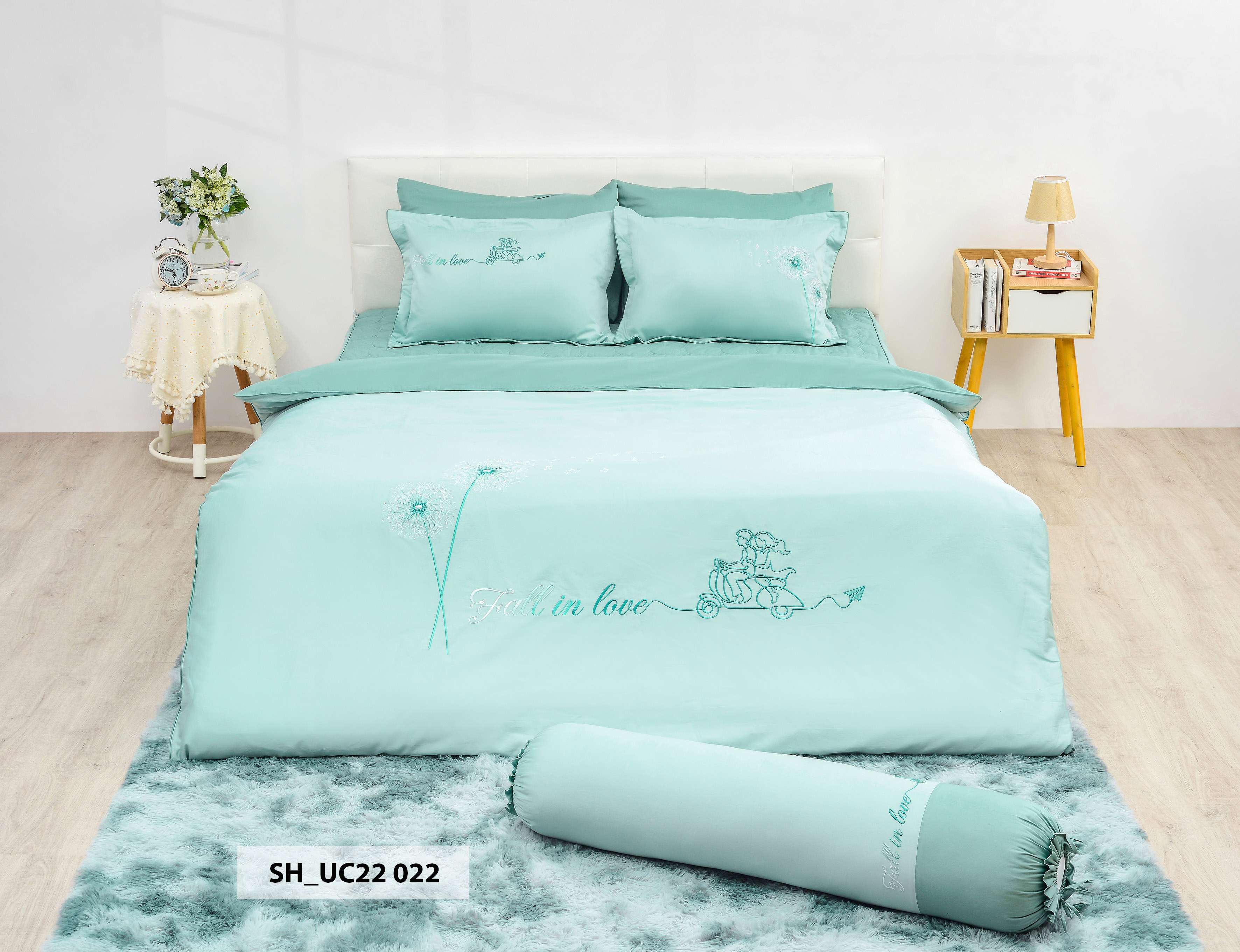 - Màu sắc:Tươi sáng,trẻ trung ,hiện đại được thiết kế với các họa tiết thêu tinh tế nhẹ nhàng và sang trọng. Bộ sản phẩm cao cấp Urban collection là làn gió mới cho căn phòng đầy yêu thương thoải mái hướng đến giấc ngủ xanh và hoàn hảo sau một ngày dài với công việc.Sự đa dạng về kiểu dáng, chất liệu, kích thước đến màu sắc mang lại nhiều lựa chọn cho gu thẩm mỹ của mỗi khách hàng.Với những cải tiến cập nhật và ứng dụng xu thế thiết kế mới nhất,không gian phòng ngủ của bạn không chỉ sang trọng ,đẳng cấp mà còn tràn ngập sự ấm áp yêu thương. UC22 022: có tông màu chủ đạo là màu xanh ngọc. Họa tiết với cặp đôi đang yêu tung tăng trên chiếc xe máy trông hạnh phúc biết bao nhiêu, dòng chữ Fall in love tạo nên sự sang trọng lịch sự cho bộ chăn ga gối. Mẫu chăn ga gối này không chỉ là sự lựa chọn hoàn hảo cho các cặp vợ chồng mà còn vô cùng thích hợp với các không gian phòng ngủ sang trọng. HƯỚNG DẪN SỬ DỤNG: