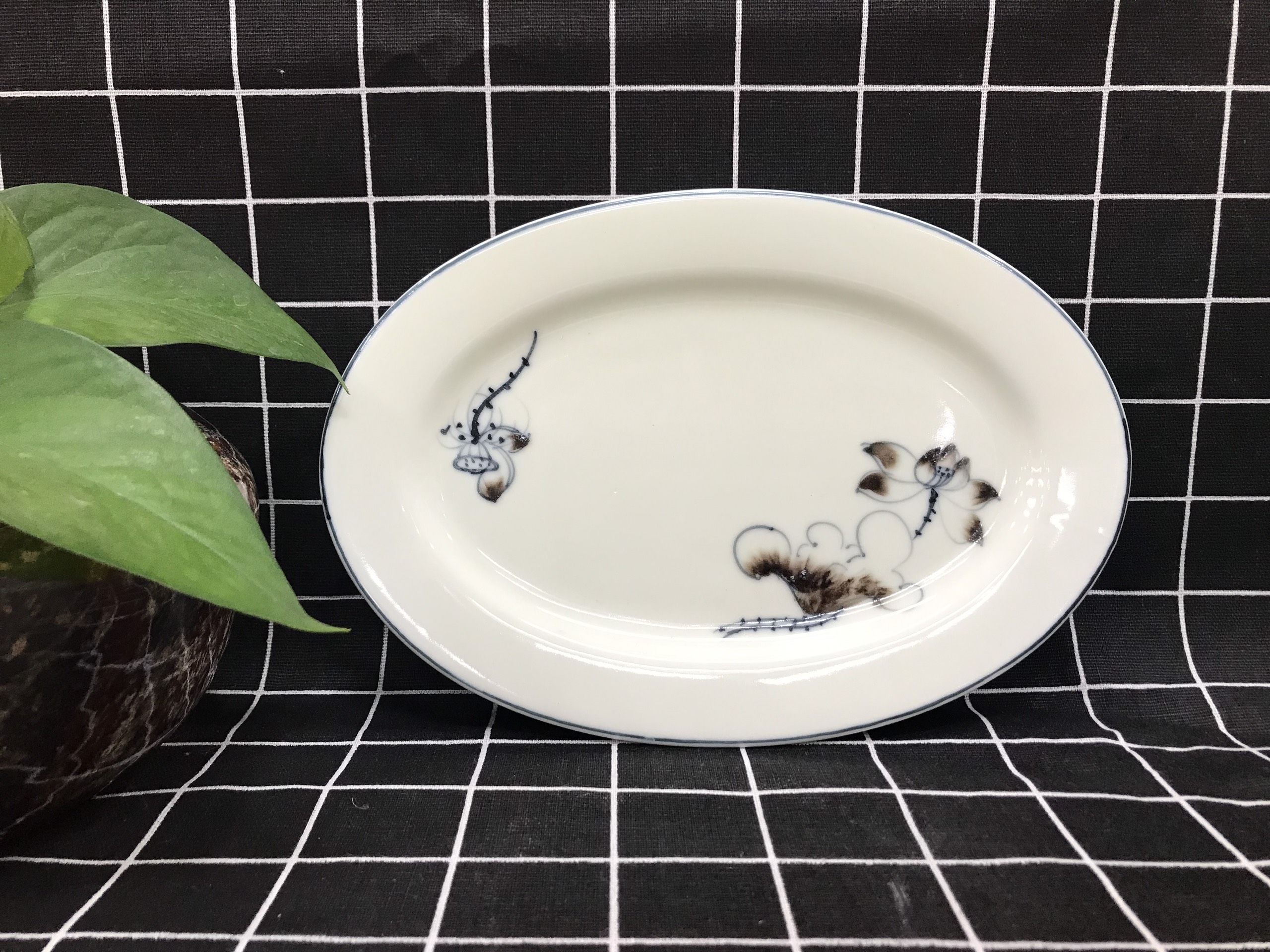 Bộ bát đĩa chén đĩa đẹp sét 21 chi tiết , siêu đẹp hoa văn hoạ tiết trắng viền đen cao cấp