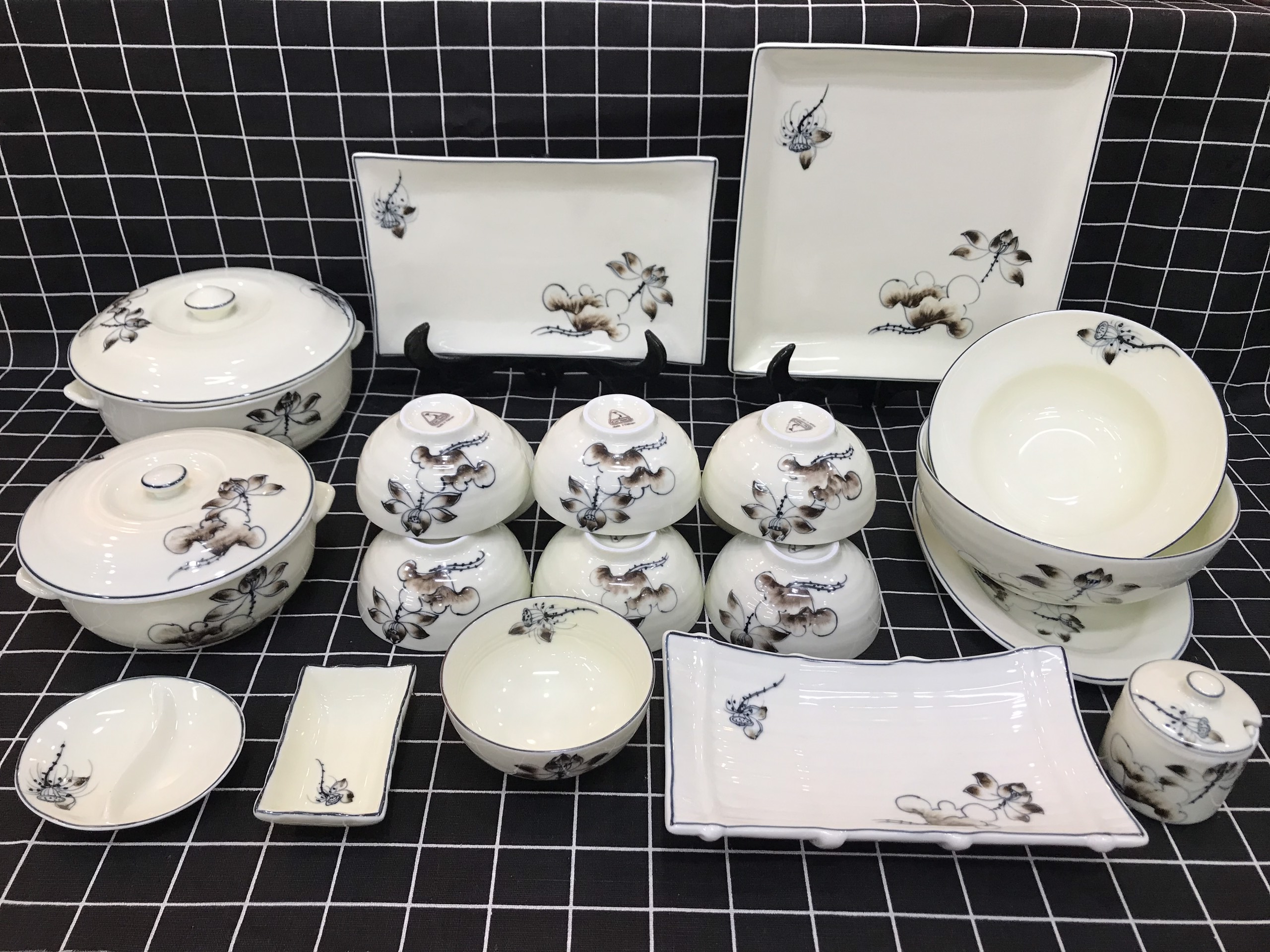 ✨Bộ Chén Dĩa 21 Sản Phẩm Họa Tiết Sen Đen