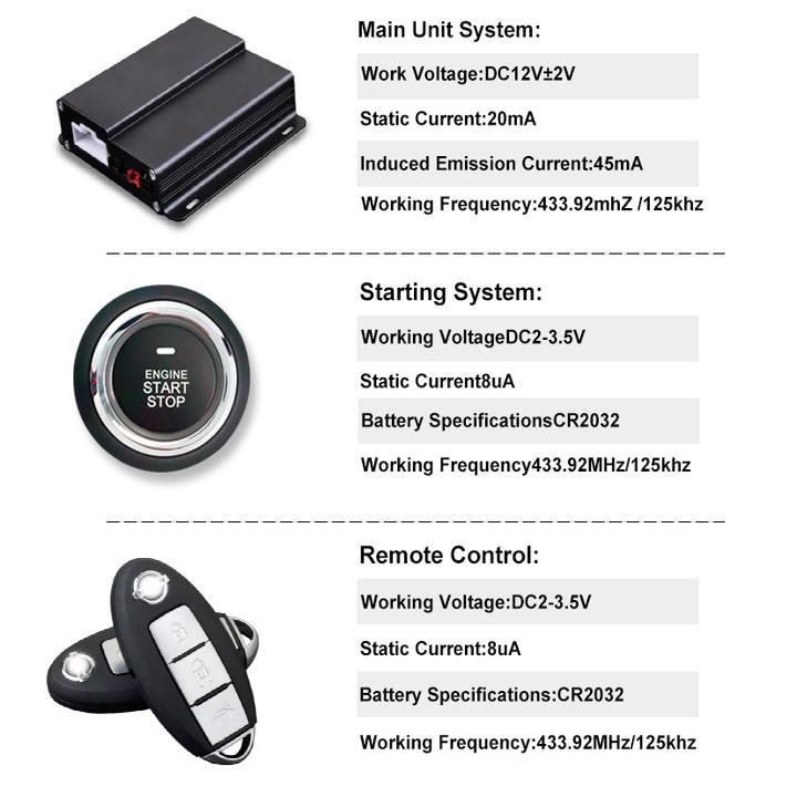 - Nút bấm Engine Start Stop thay thế ổ khóa cơ truyền thống, nên người dùng dễ dàng khởi động xe bằng thao tác bấm nút. Cơ chế hoạt động của nút bấm như sau: Khi người dùng không đạp phanh, bấm nút Startstop lần thứ nhất, hệ thống sẽ hiển thị chế độ “ACC“. Khi người dùng không đạp phanh, bấm nút Startstop lần thứ hai, hệ thống sẽ hiển thị chế đô “ON“. Ở bất kỳ chế độ nào, người dùng đạp phanh và ấn nút Startstop, hệ thống sẽ khởi động động cơ ở chế độ “Start Engine“. Ưu điểm bộ chìa khóa thông minh Start Stop