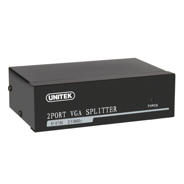 Bộ chia VGA 1 ra 2 Unitek U-8706 - Hàng Chính Hãng Đầu vào: 1 cổng VGA Đầu ra:2 cổng VGA Kháng đầu vào: 75Ω Truyền Khoảng cách lý tưởng : 25m Độ phân giải: