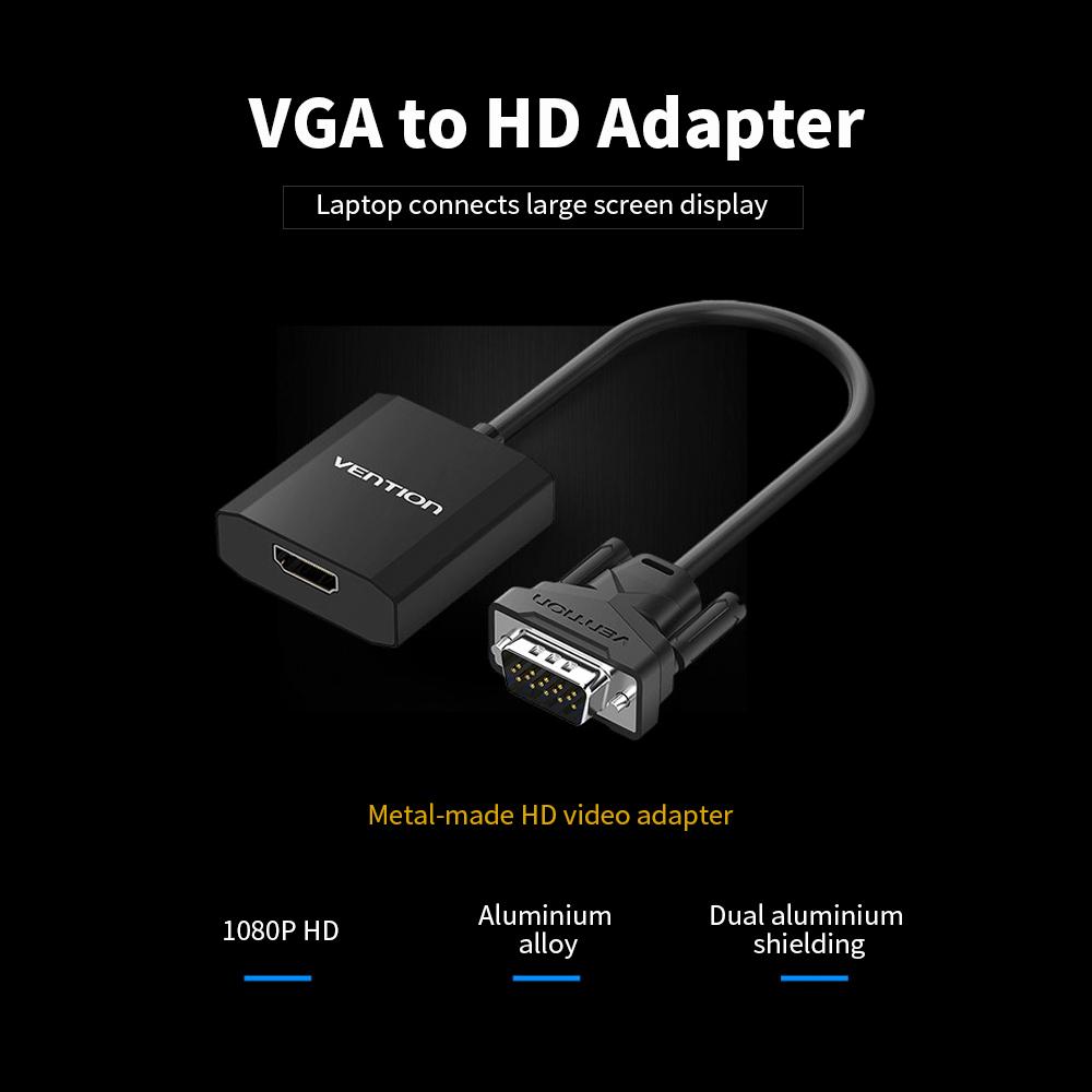 VENTION VGA to HD Adapter has independent audio port and power supply port.You can use your laptop to connect to large screen. 1080P high definitiongives you amazing visual effect. Features: Audio and Video Synchronous Transmission.