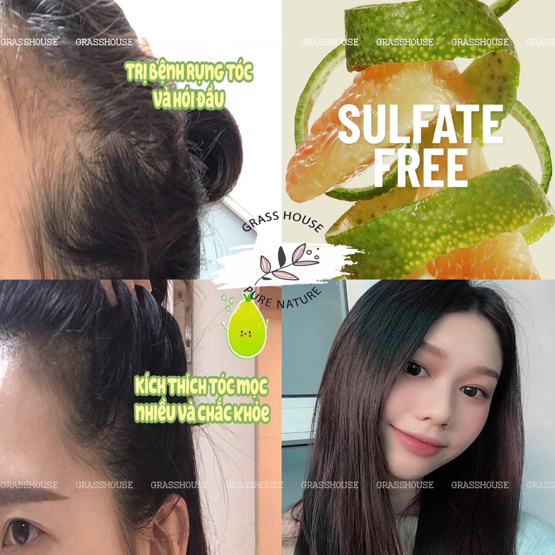MÔ TẢ SẢN PHẨM: - Chiết xuất Bưởi từ thiên nhiên có công dụng nuôi dưỡng và hỗ trợ nang tóc, giúp tóc óng mượt chiết xuất - Cây Phỉ, dầu MùU có khả năng