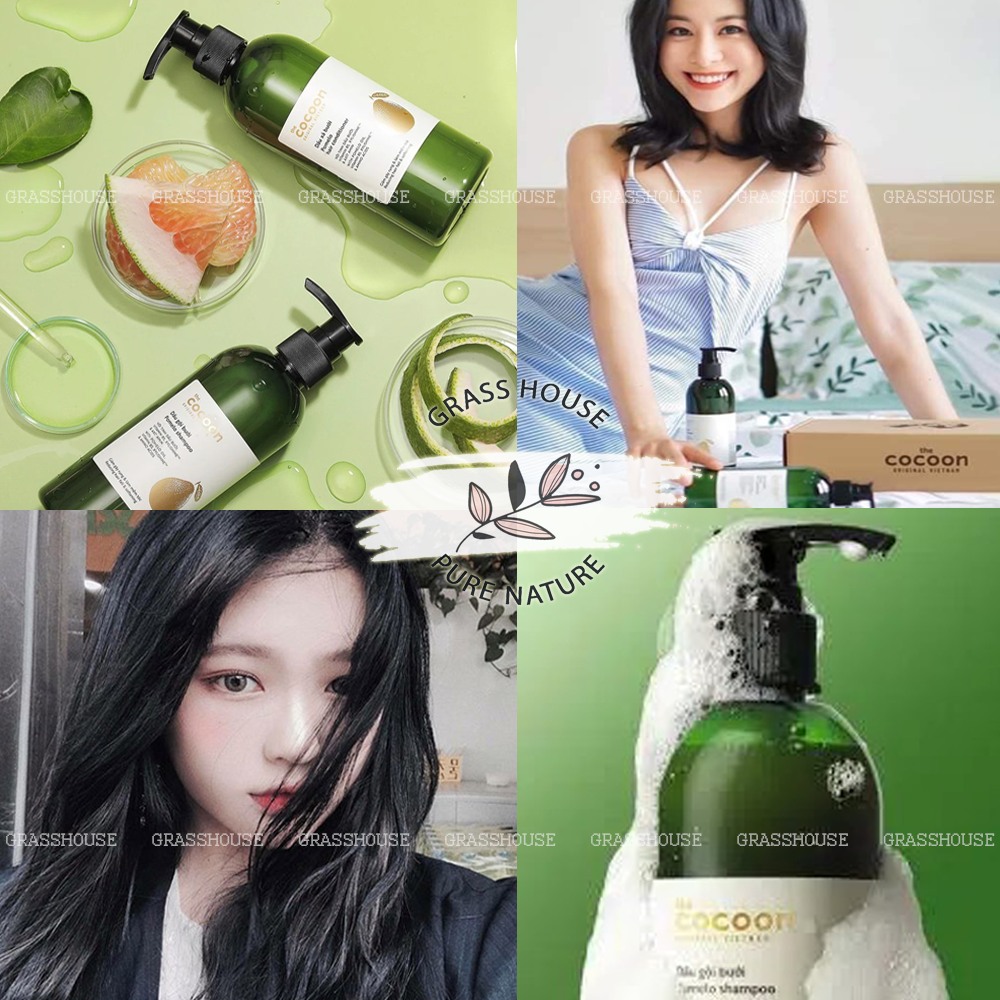 Dầu gội bưởi Pomelo cocoon thuần chay chiết xuất Từ tinh dầu vỏ bưởi Việt Nam truyền thống kết hợp với vitamin B5, hoạt chất dưỡng ẩm Xylishine cùng công thức dịu nhẹ không chứa sulfate, dầu gội bưởi ...