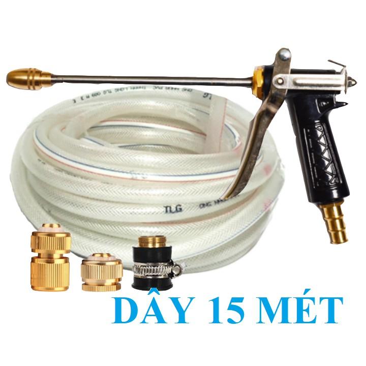 ✨Bộ dây vòi xịt nước rửa xe, tưới cây . tăng áp 3 lần, loại 15m 206318 đầu đồng, cút đồng
