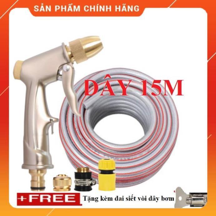 ✨️ Bộ dây vòi xịt nước rửa xe, tưới cây , tăng áp 3 lần, loại 15m 206701-1 đầu đồng,cút,nối đồng+ đai