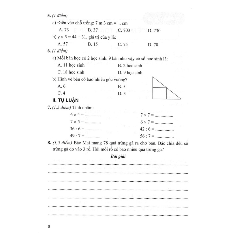 60 ĐỀ KIỂM TRA VÀ ĐỀ THI TOÁN LỚP 3 - GIỮA HỌC KÌ 1 - ĐỀ 2 -Thầy Nhựt TV
