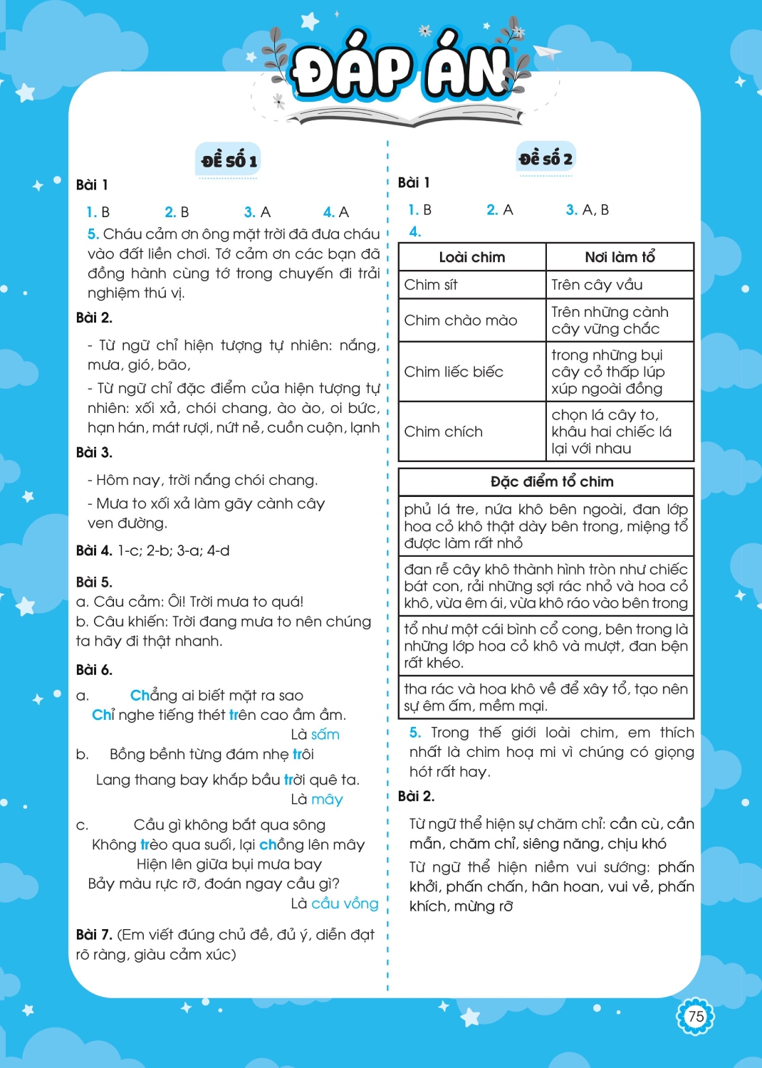 Hướng dẫn chi tiết: Cuối sách cung cấp phần Đáp án - Gợi ý để giúp các em học sinh và phụ huynh dễ dàng tham khảo thêm.