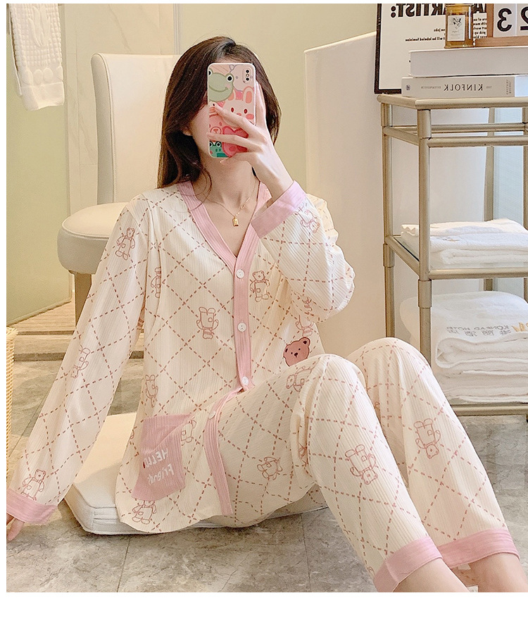 - Bộ pijama mặc cữ với thiết kế áo mở cúc 2 bên cho con bú, cực kì an toàn cho em bé khi ti mẹ so với sản phẩm dùng khóa