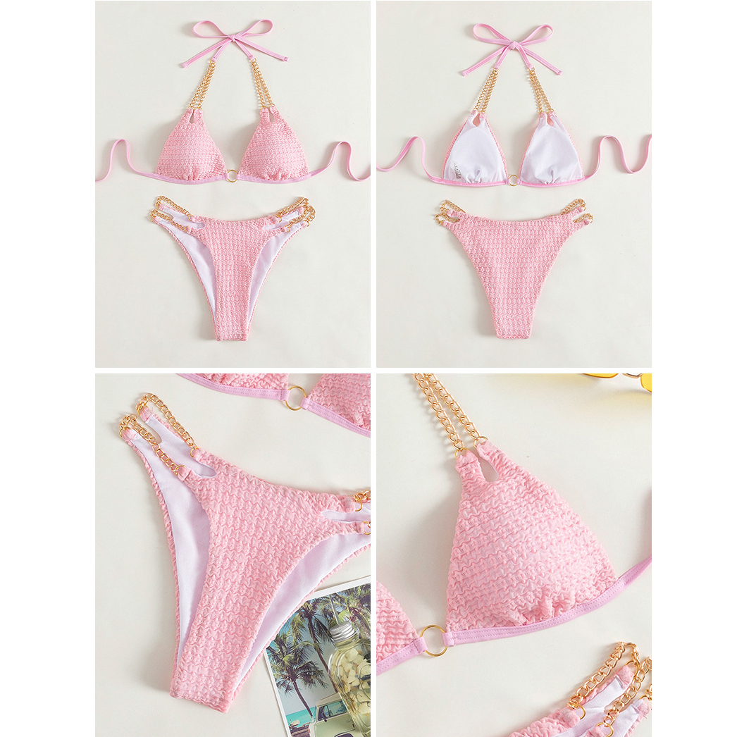 - Bikini 2 mảnh được thiết kế có lớp lót ngực, giúp che chắn vòng 1 mà không cần phải mặc áo lót, để bạn gái an tâm và tự tin hơn.